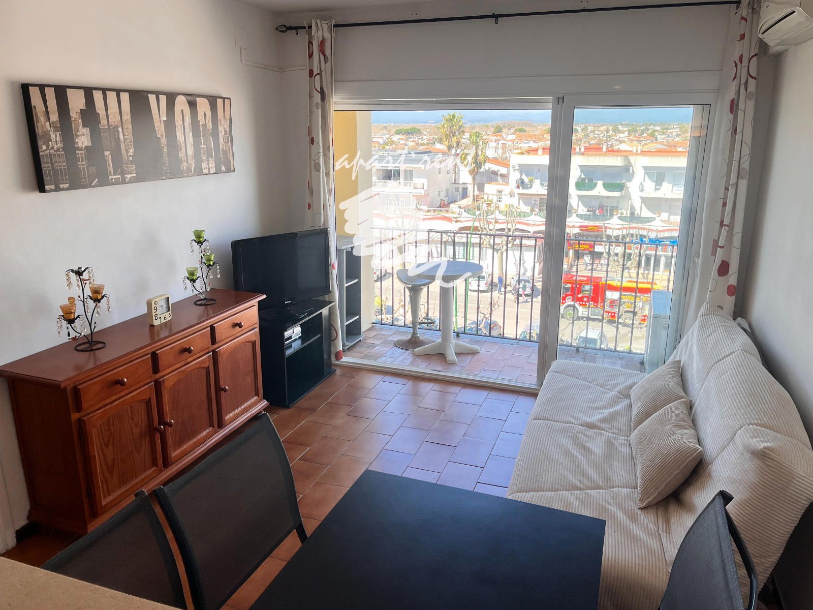 L’apartament es ven completament moblat, està orientat a l’oest, cosa que li proporciona una excel·lent llum natural a la tarda, i disposa d’aire condicionat per a un major confort durant tot l’any.