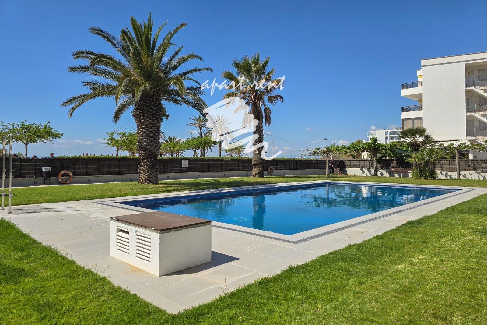 En 1ª línea, además de tener el paseo marítimo y la playa a unos metros, la residencia dispone de piscina y jardín comunitarios.