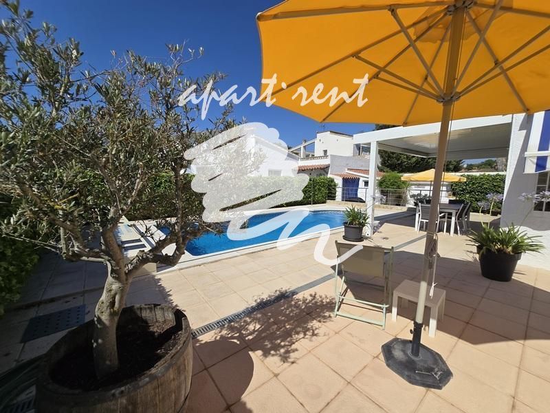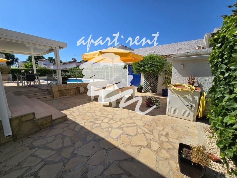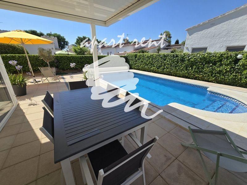 Esta casa de una sola planta en el sector Montseny de Empuriabrava cautiva por su estilo y sus agradables espacios exteriores. Gracias a su excelente orientación suroeste, la casa disfruta de sol durante todo el día, creando un ambiente cálido y luminoso.